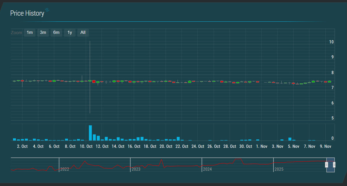 Динамика обменного курса токена MTL к USDC на DEX Stellar за последний месяц.