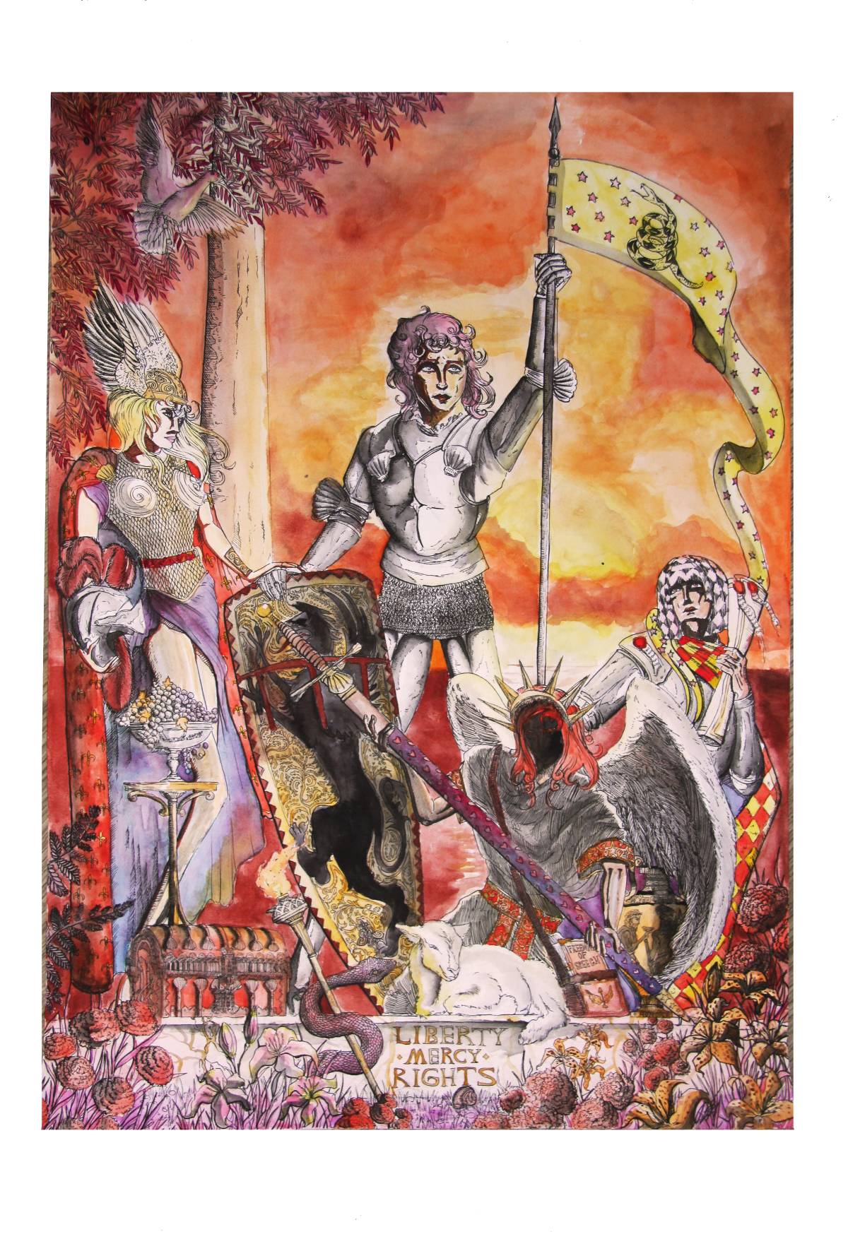 Агнец, змея и Вдохновленный, что разносит человеческую правду по миру.